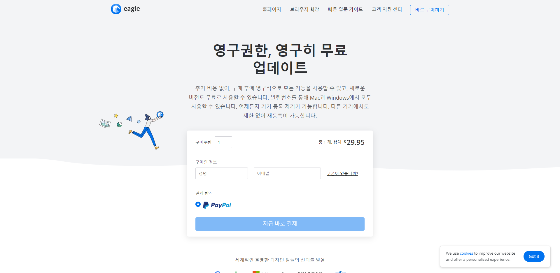 이용 요금 $29.95 / 평생 소장 / 기기 등록 2개까지 가능(학생 및 교직원 할인은 30%)