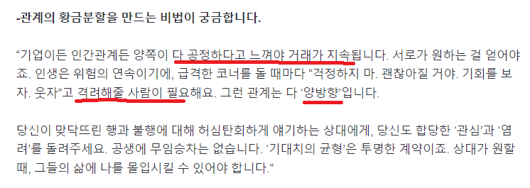 14. 쉬운 길보다, 어려운 길이 언제나 더 나은 길입니다. 지름길로만 가려고 하는 사람은 결국 커리어가 망가집니다.