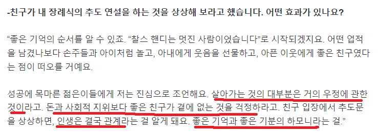 2. 네트워크의 밀도를 높이세요. 인생에서 행운은 큰 역할을 하고, 운을 높이는 방법으로 더 많은 사람을 아는 것보다 더 좋은 방법은 없습니다. 사람이 곧 행운이라는 말입니다. 그리고 그런 사람을 발견하면, 책이든, 기사든, 아니면 이메일이든, 그 사람에게 보내서 당신이 늘 그 사람을 생각하고 있다는 것을 보여주세요. 또한, 그 책이나 콘텐츠에 대한 본인의 생각을 글로 쓰고, 사려 깊은 사람들과 함께 생각을 나눌 수 있는 자리를 만들어보세요.