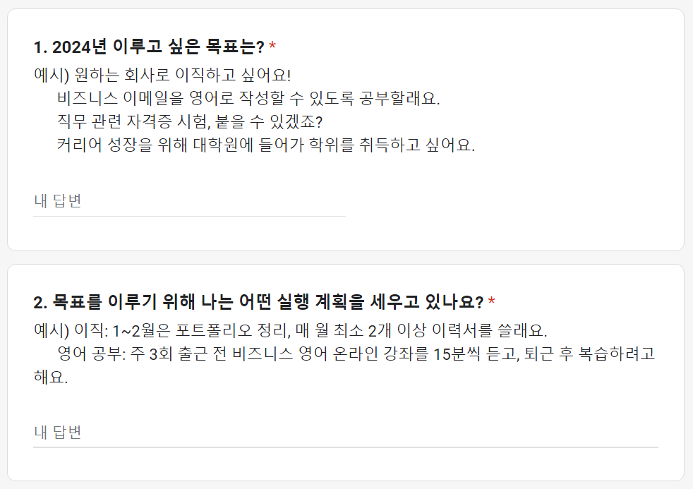 2024년 목표를 이룰 수 있게 폴인에서 설문에 참여한 회원 대상으로 선착순 500명에게 중간점검을 할 수 있게 당시 내가 작성한 목표를 우편으로 보내주는 이벤트