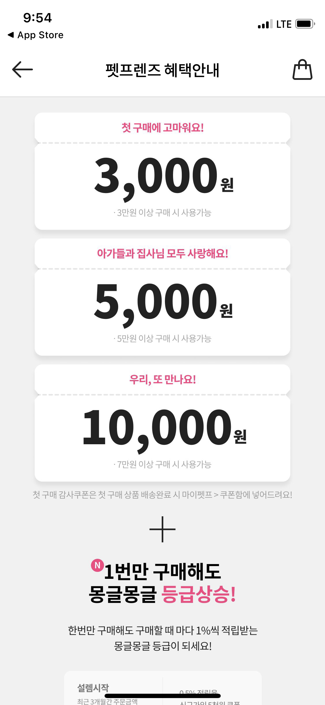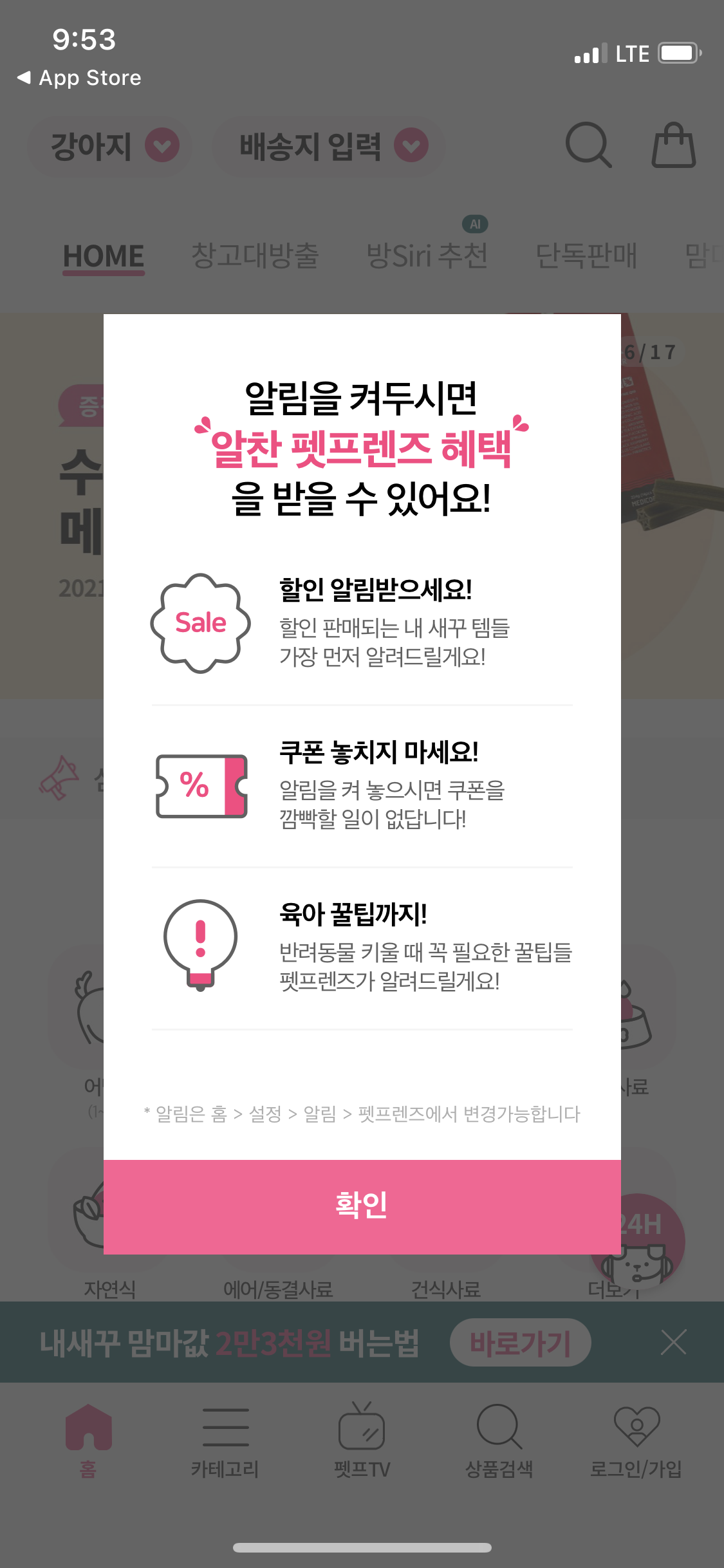 - 배경이 딤드 처리 되고 팝업이 뜨는데 혜택을 한눈에 보기 쉽게 나열해주고 놓치면 안 될것 같은 느낌을 준다.