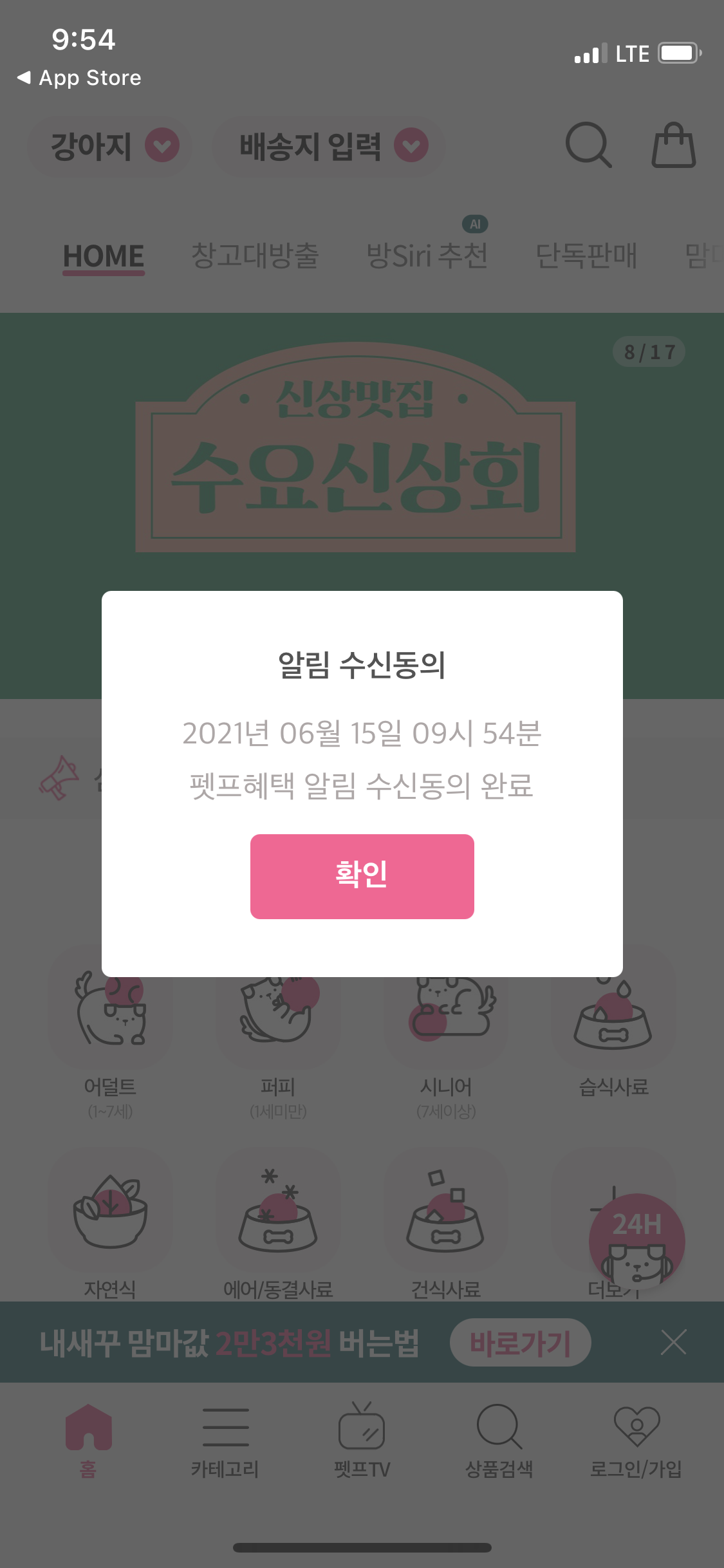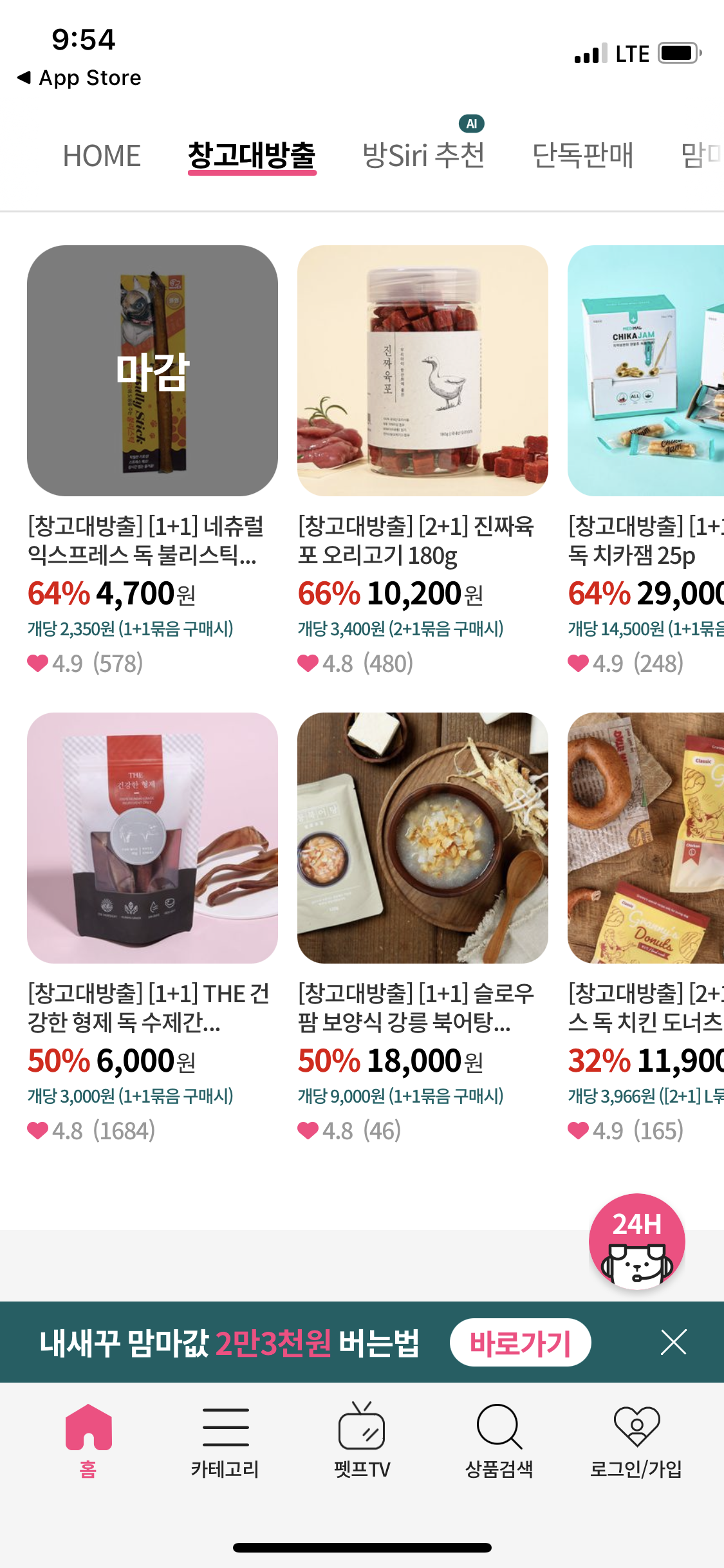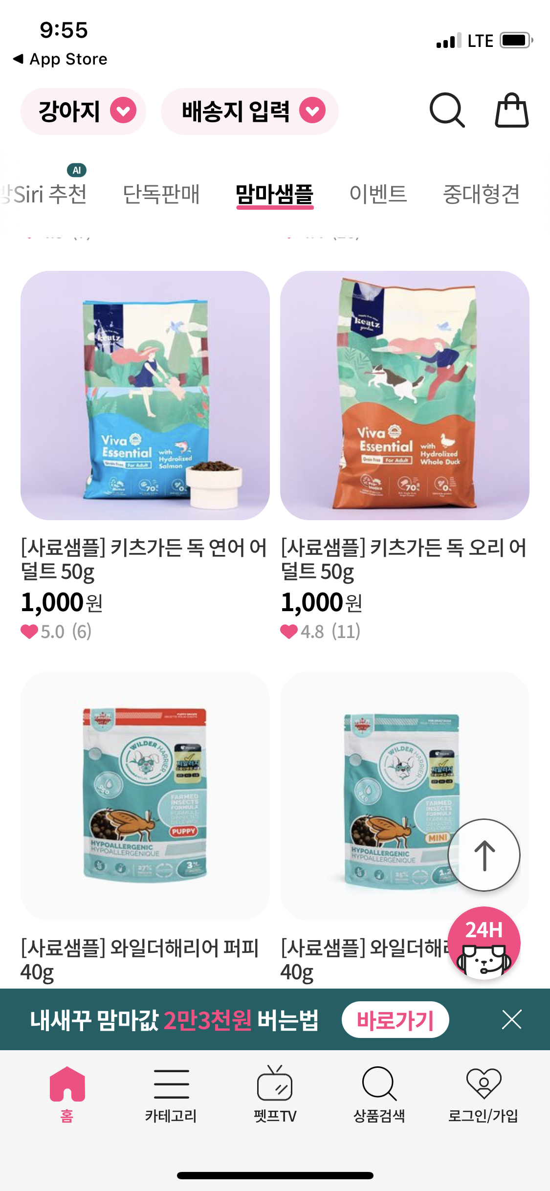 - 단순 인기상품, 베스트 상품이 아닌 "오직 펫프에서만!", "평점 4.5 이상! 심쿵팸들의 선택" 등 서브 타이틀 문구들이 눈에 띈다. 특별히 구매해야겠다는 니즈가 없을 때 평점 좋은 아이템들만 둘러보다가 구매할 수도 있겠다.