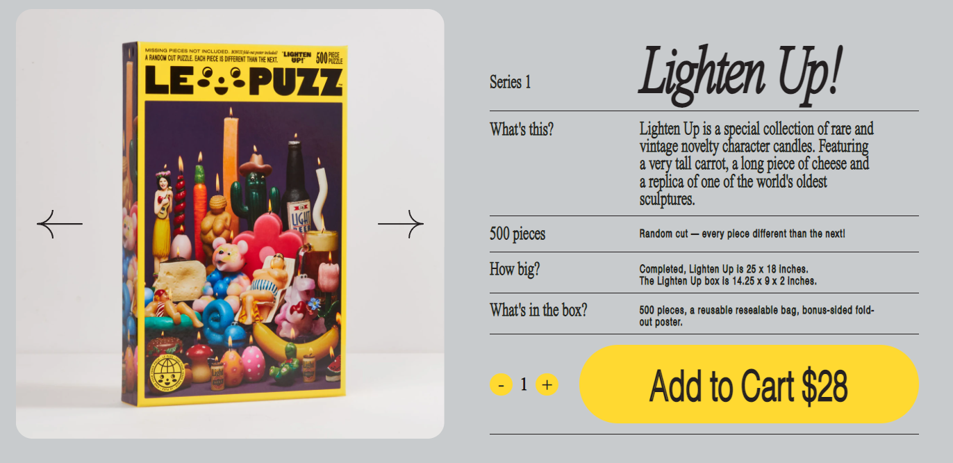 60~80년대 레트로 빈티지 감성을 지향하고 친환경 성분으로 만든 퍼즐을 판매하는 해외 사이트이다.