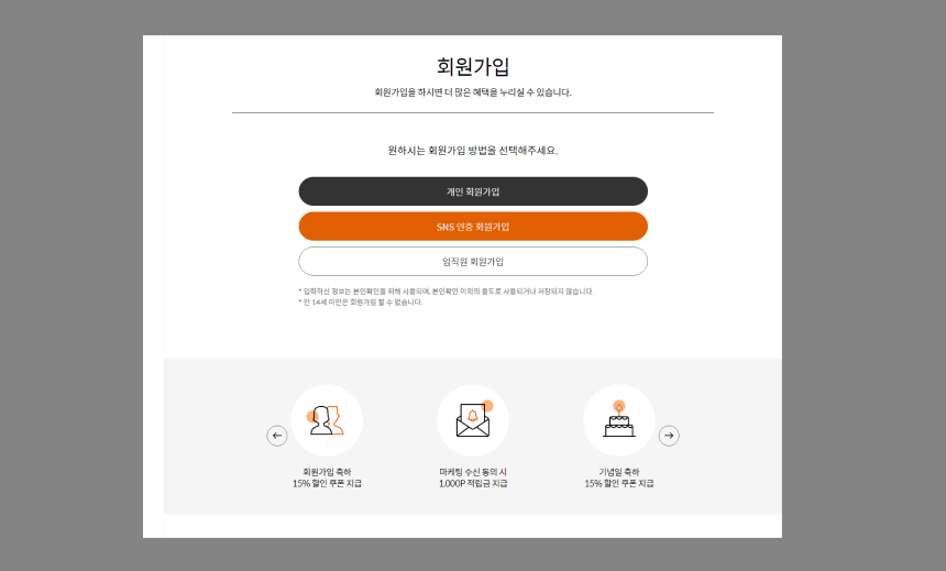 - 가입 진행 전 회원이 되면 좋은 점을 하단에 노출