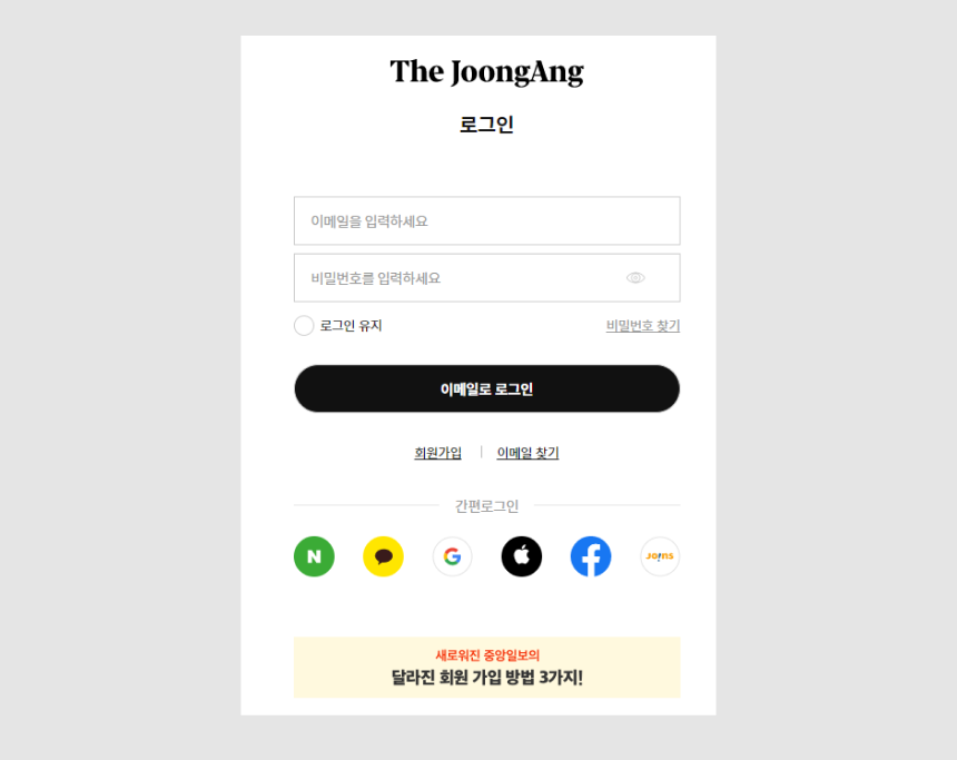 CTA버튼에도 '로그인' 이 아닌 "이메일로 로그인"이라고 한번 더 사용자에게 주의를 주고 있다.