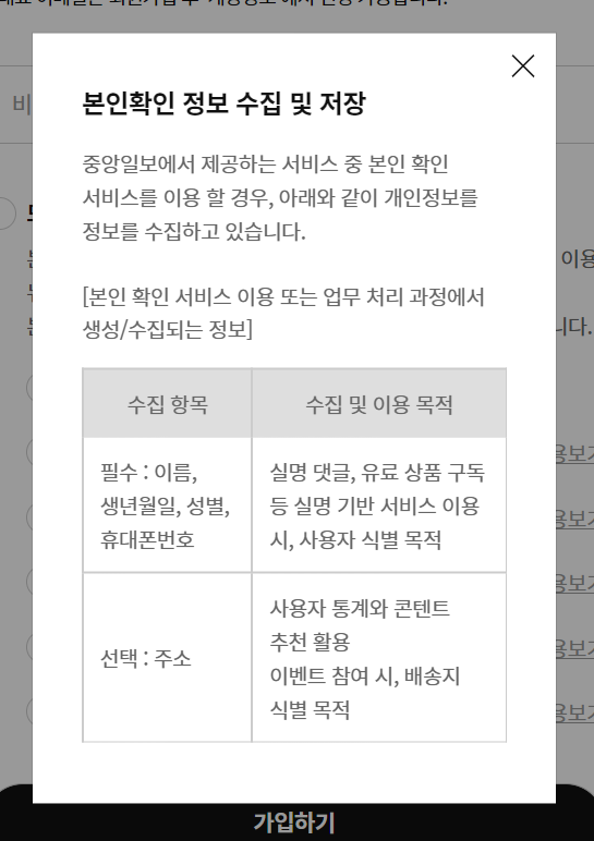- 개인정보 수집 및 이용(필수) 외에 본인 확인 정보 수집 및 저장(선택)은 뭘까..?