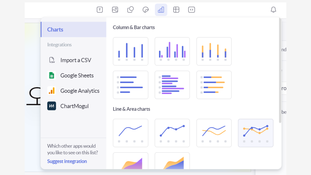 - 각종 차트를 삽입하거나 데이터를 불러오기가 가능하다.