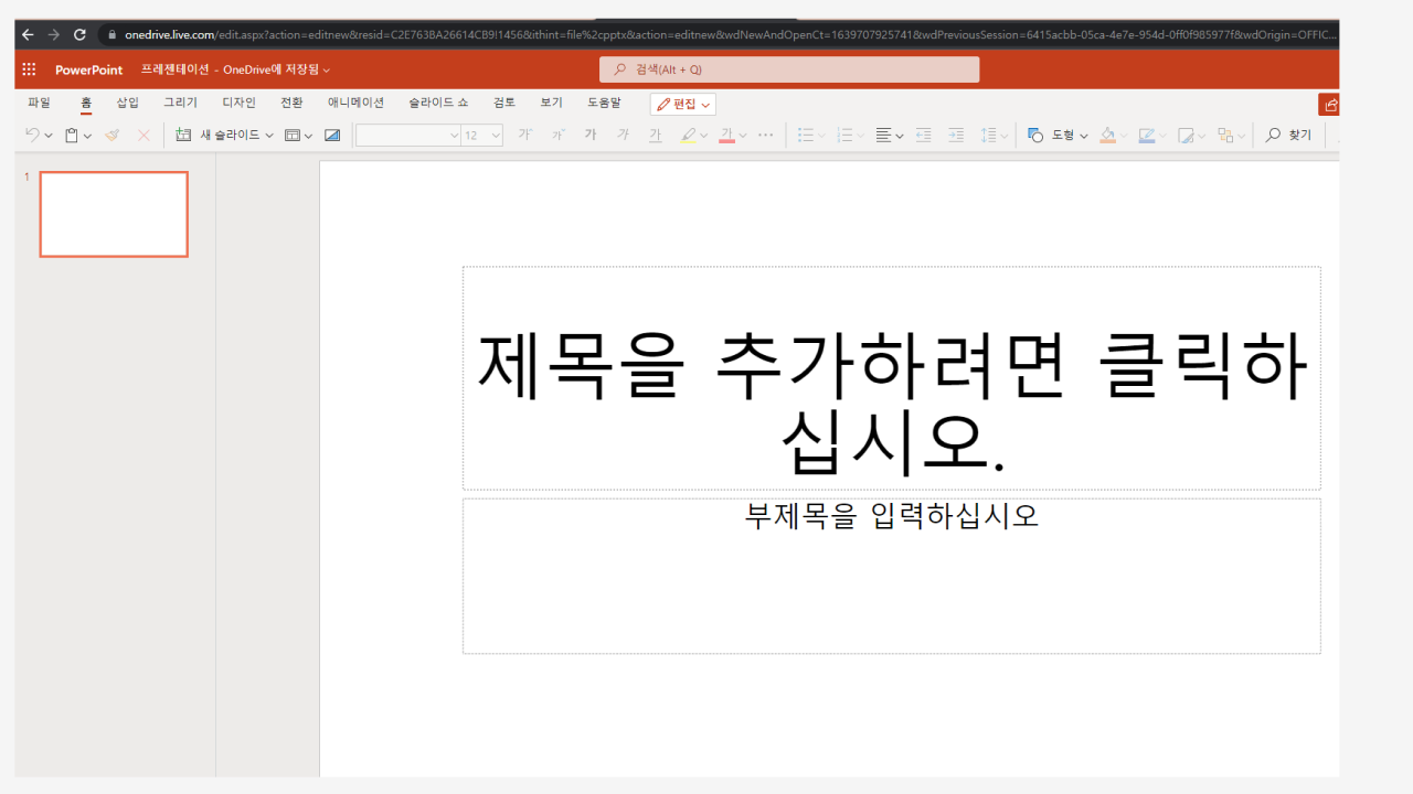 - 첫 시작화면은 템플릿 탐색, 새 프레젠테이션 만들기, ppt 가져오기 중에 선택 가능하다.