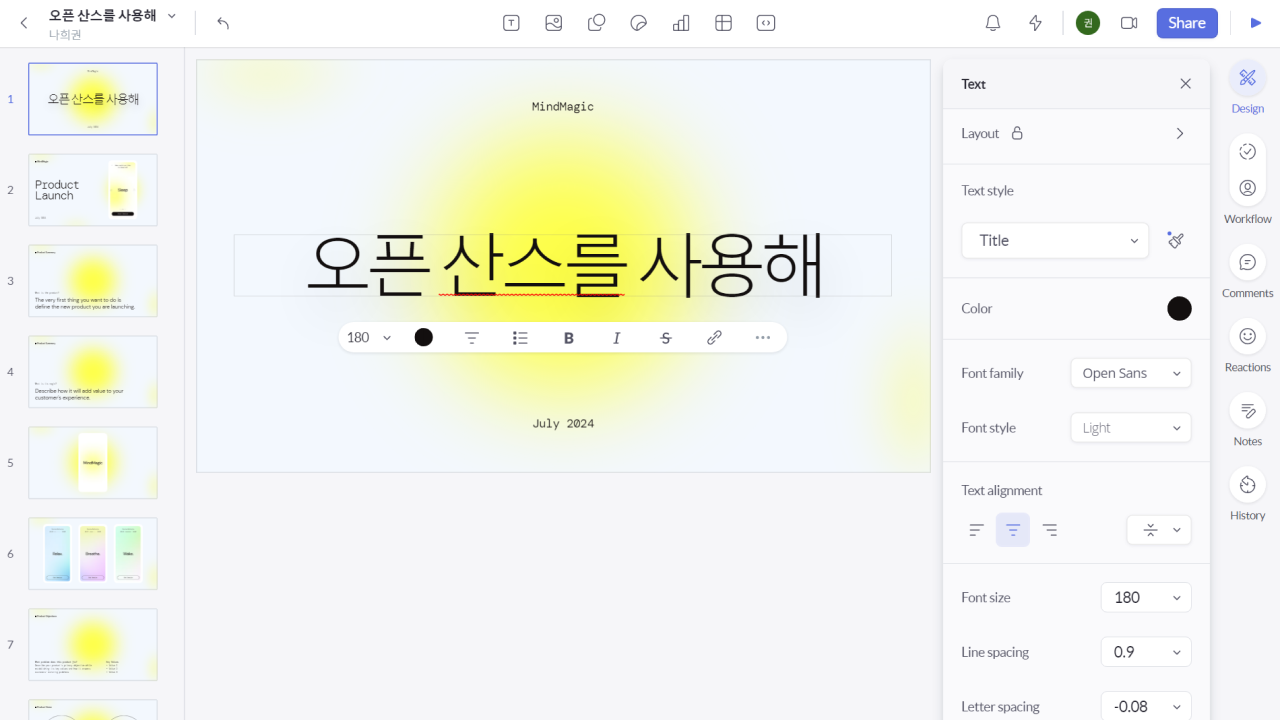 - 한 가지 단점은 해외 서비스이다 보니 한글전용 서체가 없었다.